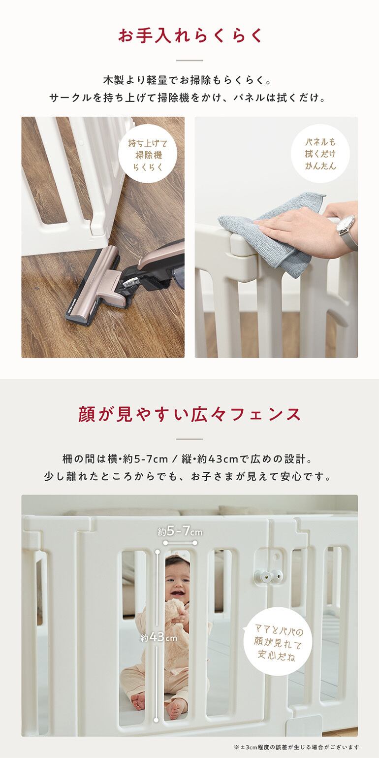 ・赤ちゃんの顔が見やすい広々した柵