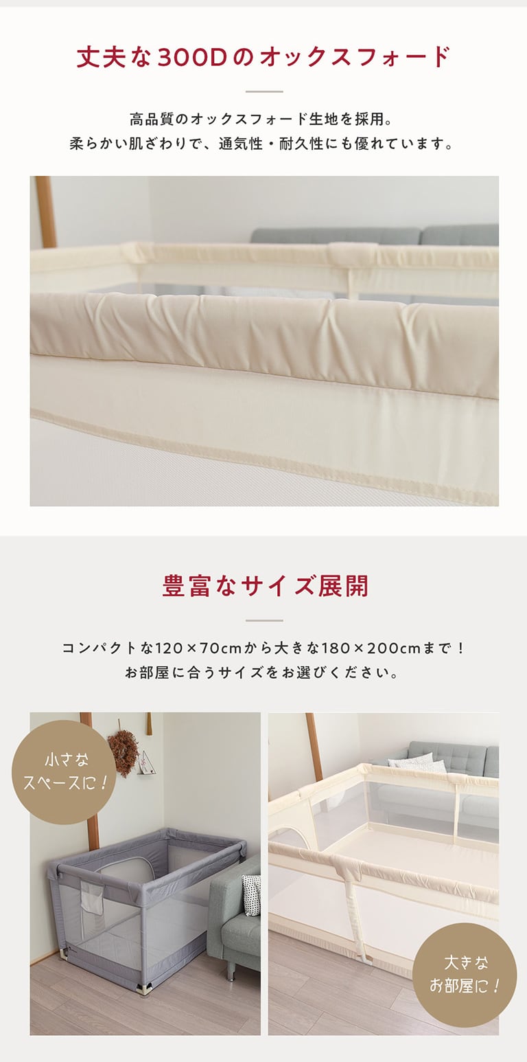 メッシュ ベビーサークル プレイヤード ベビーゲート 赤ちゃん ベビー 子供 プレイマット 長方形 正方形 持ち運び リビング マット 折りたたみ 吸盤 [180x200]