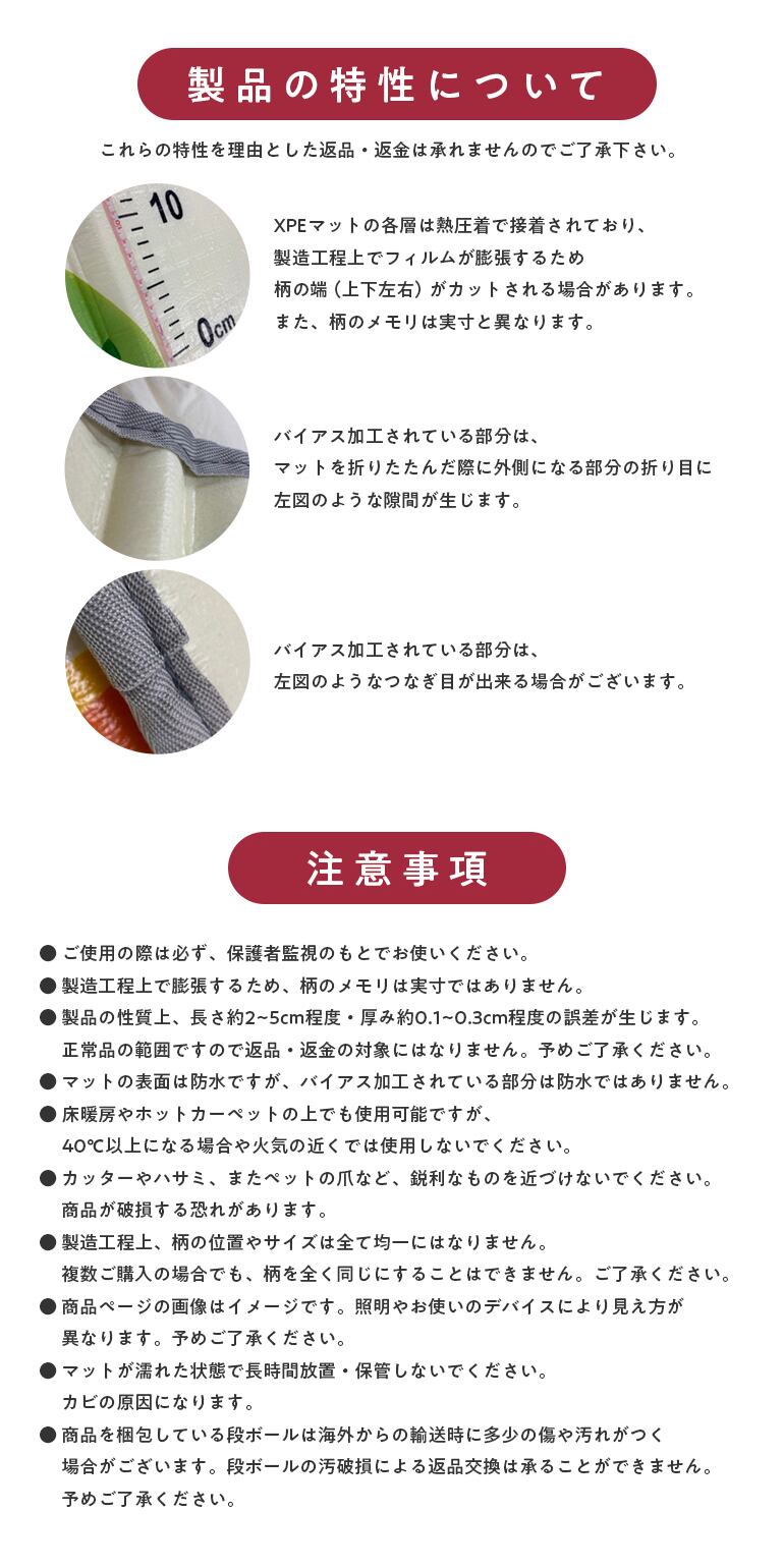 ・マットの表面は防水ですが、バイアス加工されている部分は防水ではありません。