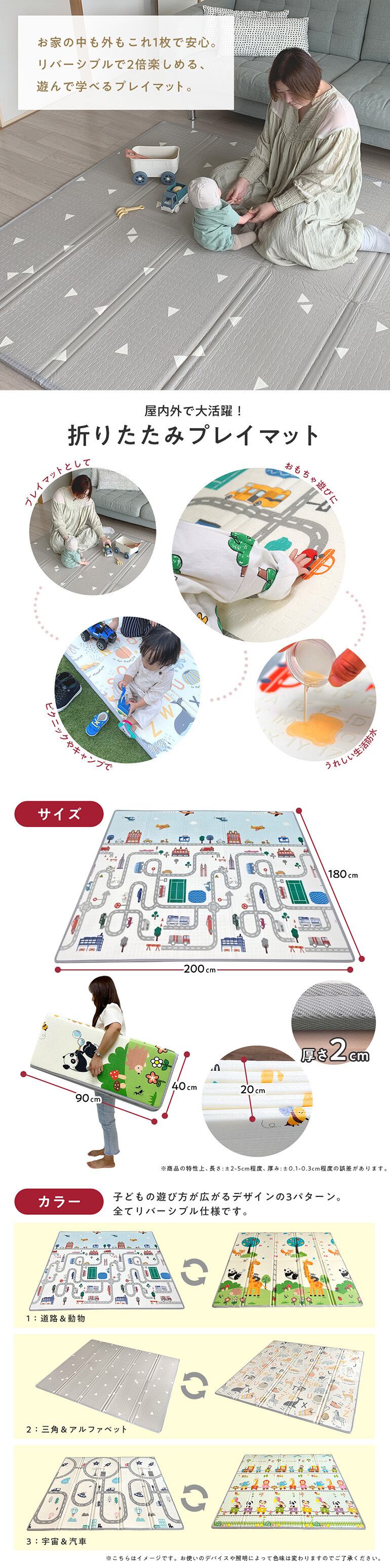 ![プレイマット 赤ちゃん 道路 ベビーマット 防水 防音 厚手 折りたたみ キッズマット フロアマット 持ち運び リバーシブル キッズ 日本メーカー [155x180x1cm]](https://baseec-img-mng.akamaized.net/images/item/origin/2000f933704efcc61e4a43aee038c061.jpg?imformat=generic)