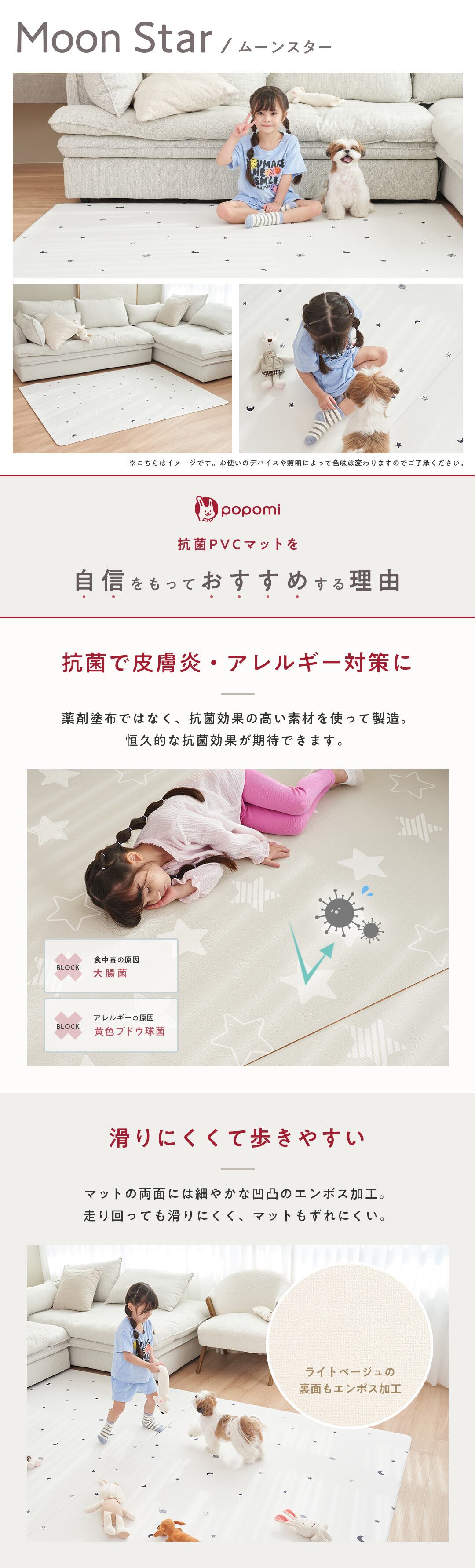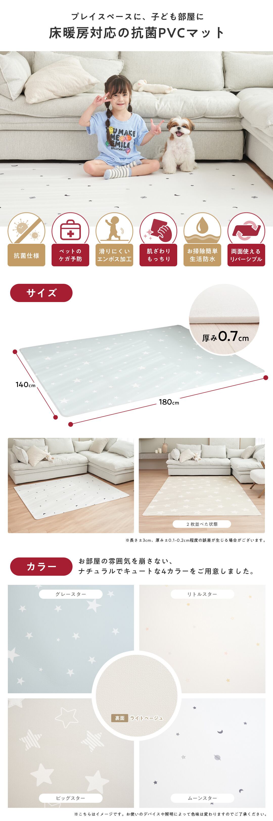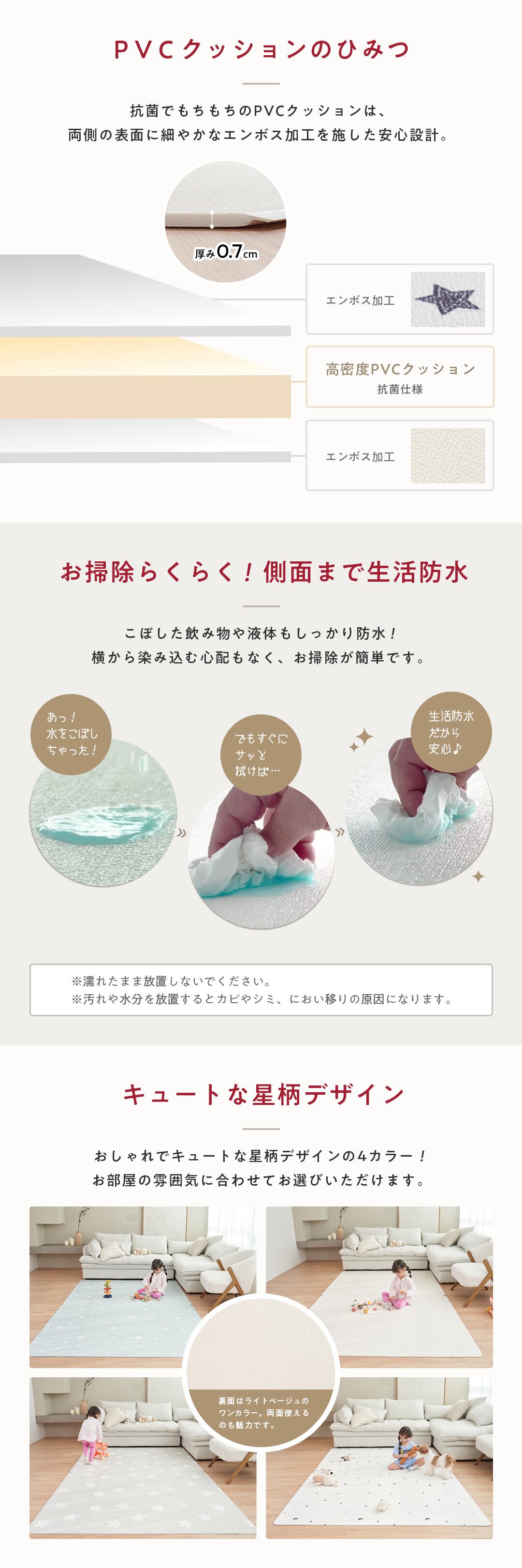 プレイマット 赤ちゃん ベビーマット フロアマット 抗菌 防水 防炎 ベビー リビング 大型 星柄 星 もちもち pvcマット フローリング シームレス 大判