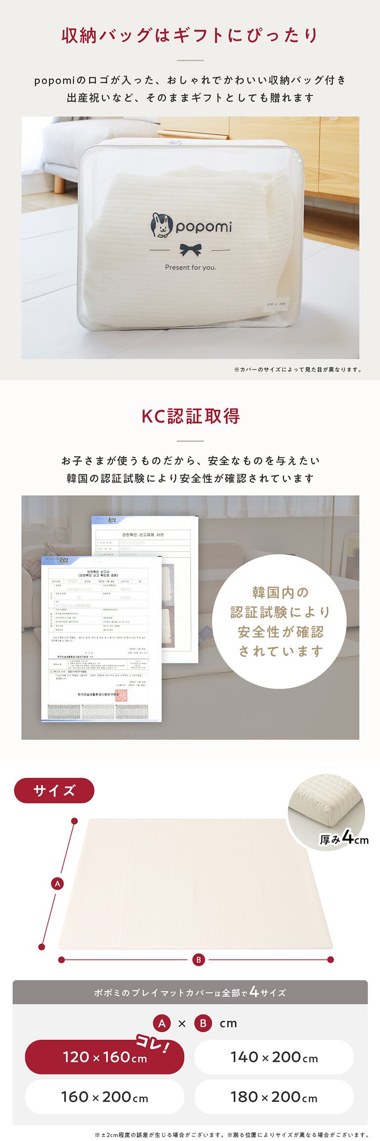 プレイマット専用ふんわりイブルカバー 綿100% プレイマット 赤ちゃん ベビー 厚手 4cm 通気性 吸水性 綿 イブル カバー ベビーマット [120×160cm]
