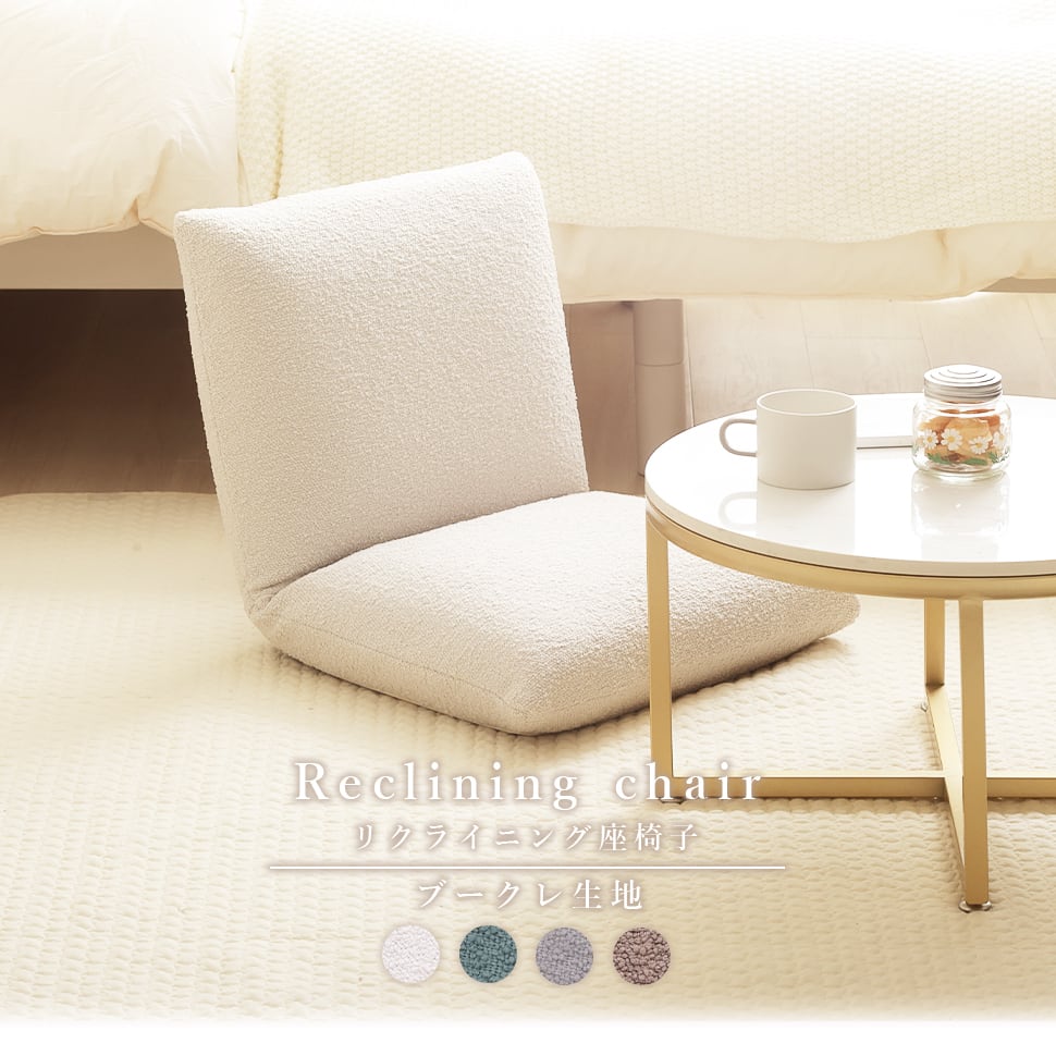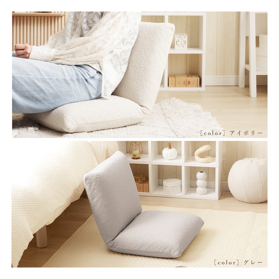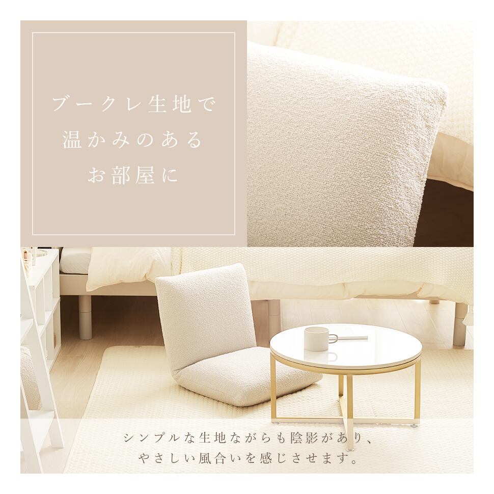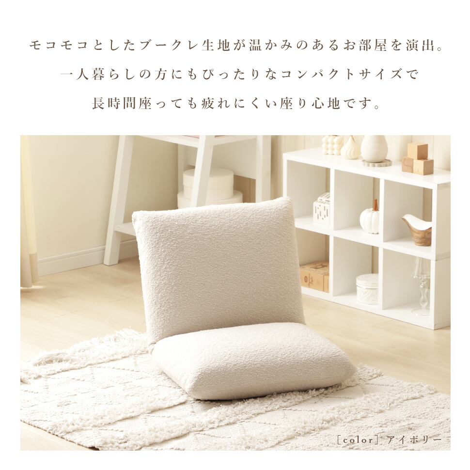 座椅子 ブークレ生地 疲れにくい 14段階 リクライニング コンパクトサイズ シンプル おしゃれ かわいい モコモコ ふんわり 一人暮らし ワンルーム 日本製
