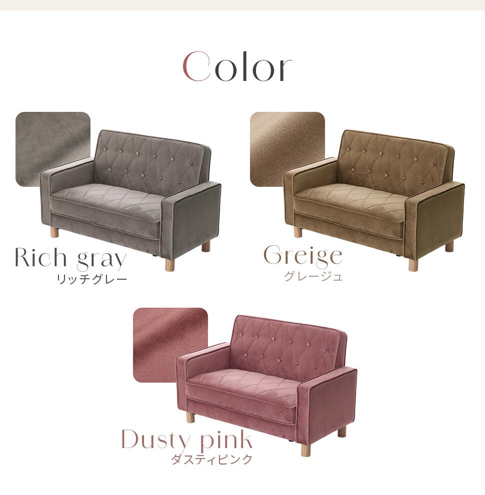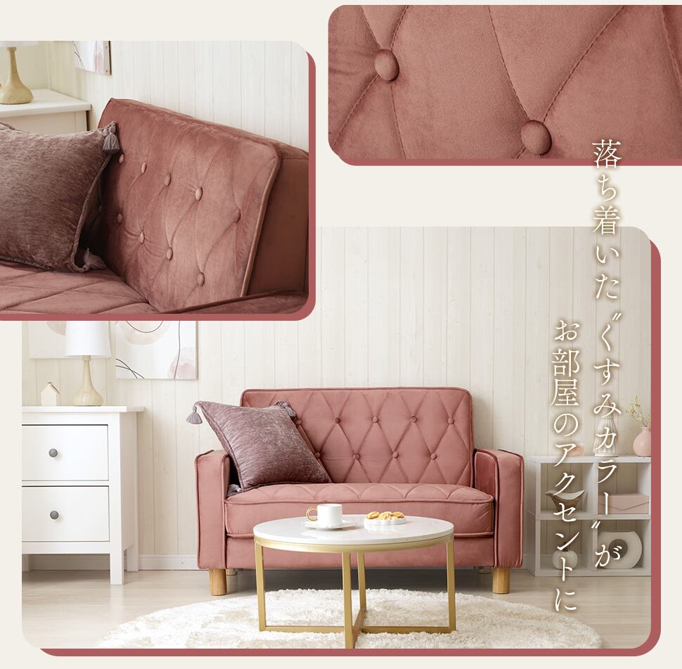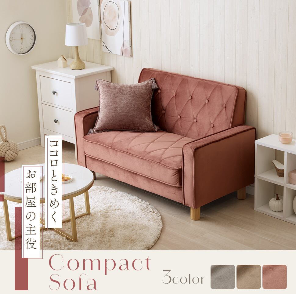 ソファ コンパクト くすみカラー ローソファ ベロア調 キルティング ポケットコイル 肘有 ワンルーム 一人暮らし おしゃれ かわいい 簡単組み立て 工具不要