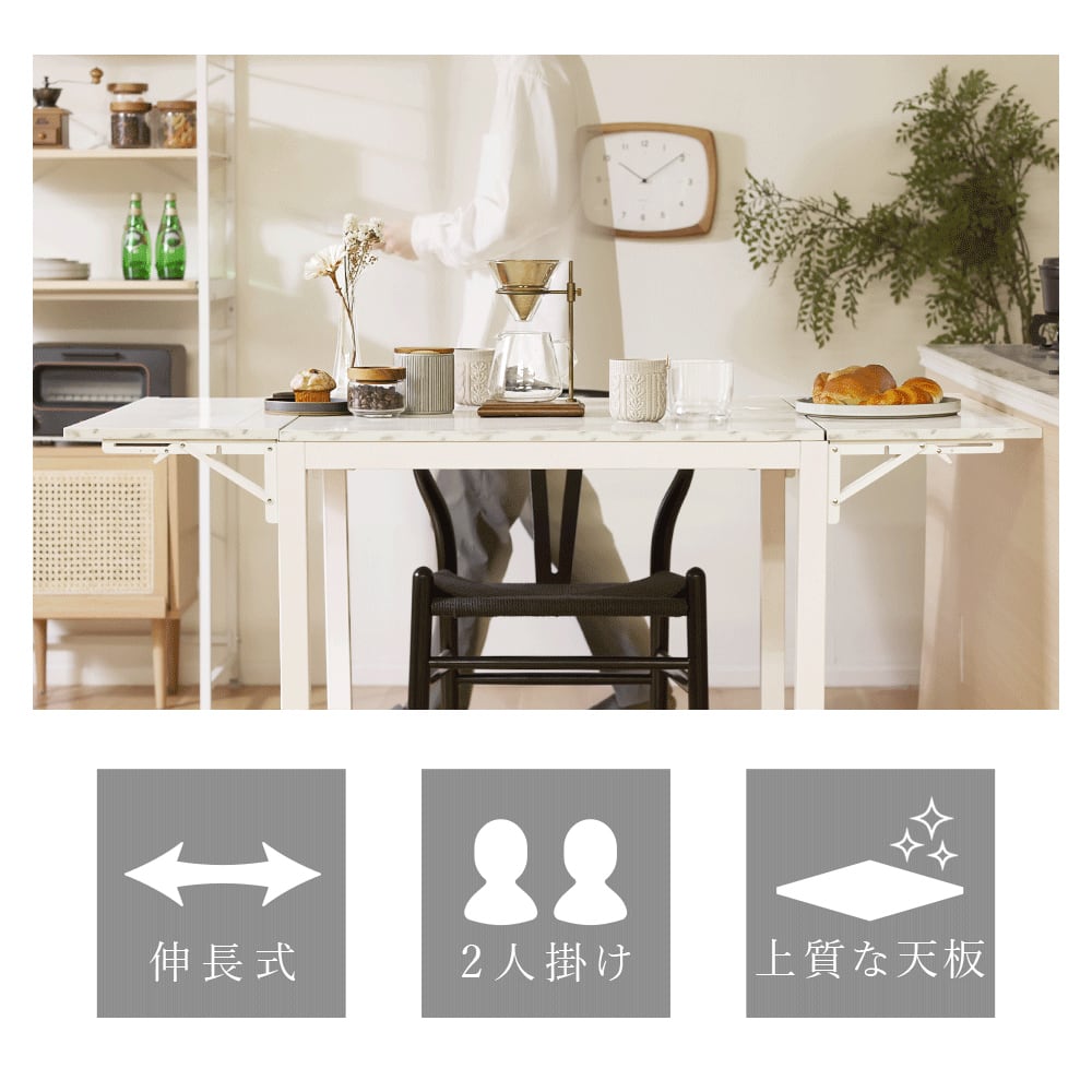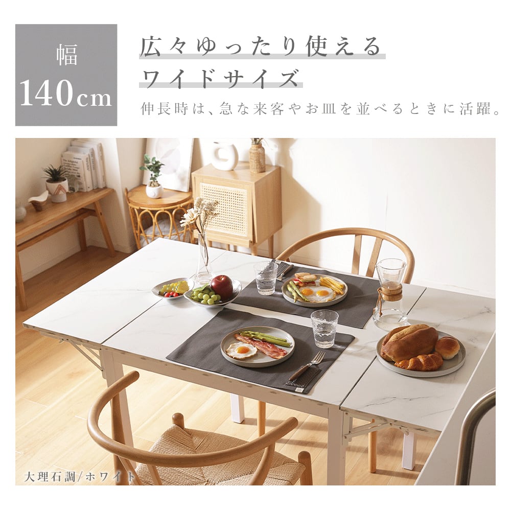 テーブル ダイニングテーブル 伸長式 デスク リビングテーブル 2人掛け 4人掛け おしゃれ ナチュラル 高級感 ラグジュアリー 木目調 ストーン調 大理石調