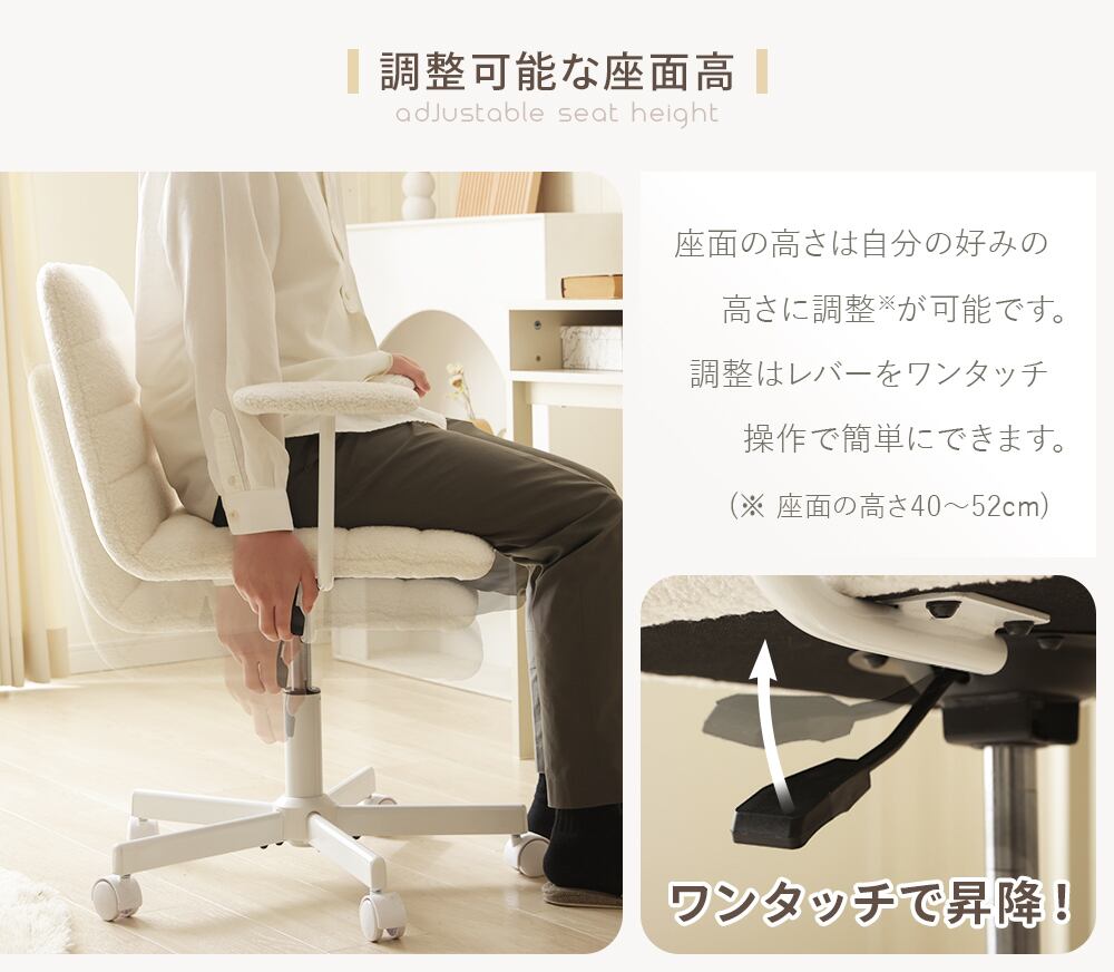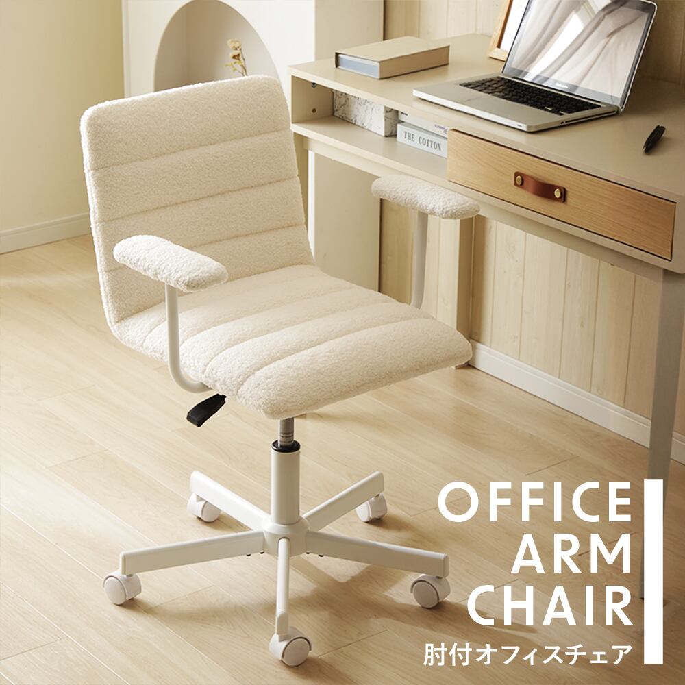 肘付き オフィスチェア モダンチェア アームチェア ブークレ生地 キャスター 昇降 高さ調整 アームレスト ふわふわ もこもこ デスクワーク