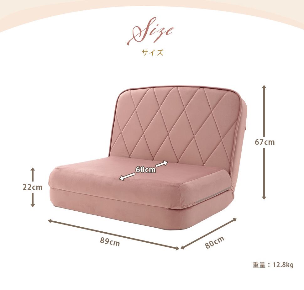 ソファ時:約W89×D80×H67、座面高22(cm)