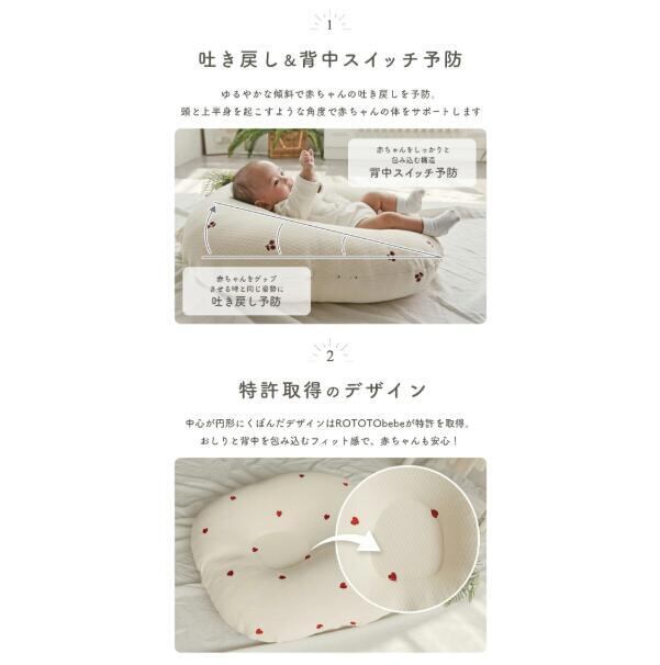 正規品 吐き戻し防止 授乳クッション ロトトクッションは、大切な赤ちゃんの授乳やお昼寝をサポートする特別なアイテムです!メッシュ素材を使用しているため、通気性が良く、赤ちゃんを快適に保ちます。へたりせず、しっかりとした形状をキープできるため、長くご使用いただけるのが魅力です。洗える素材で、いつでも清潔に保てることも嬉しいポイント。ベビーベッドやお昼寝シーンでの使用だけでなく、出産祝いの贈り物としても最適です!赤ちゃんの安心感を高め、穏やかな時間を提供するこの授乳クッションで、ママと赤ちゃんの特別な瞬間をお楽しみください。