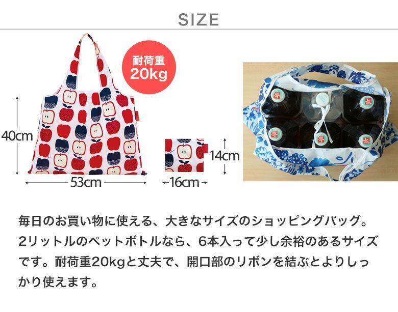 バック:約W53cm×H40cm、持ち手約52cm ポケット:約W16×H14cm