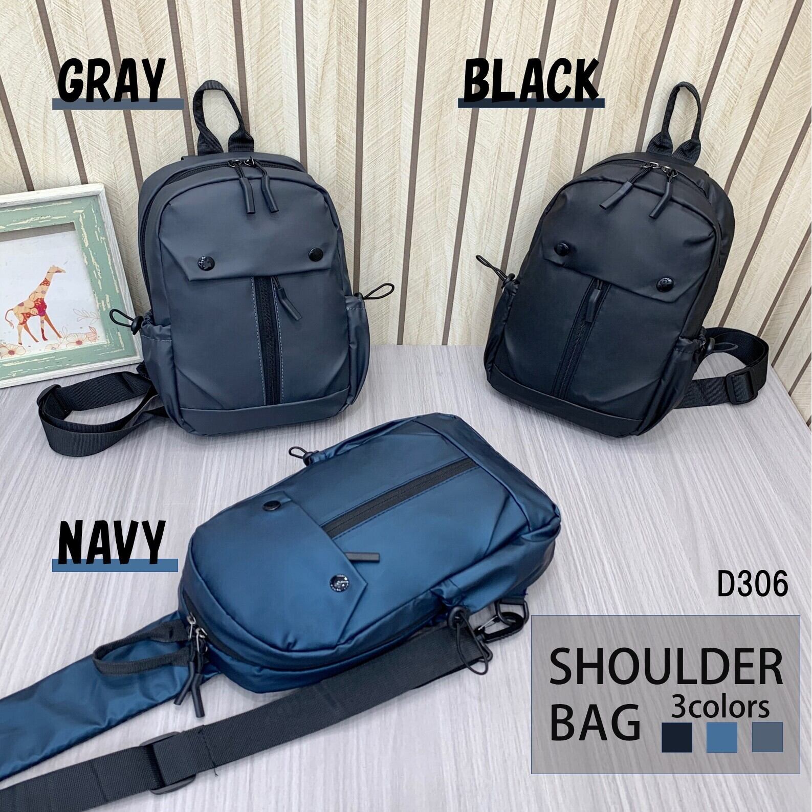 【D306】【グレー】ショルダーバッグ メンズ お洒落 ナイロン