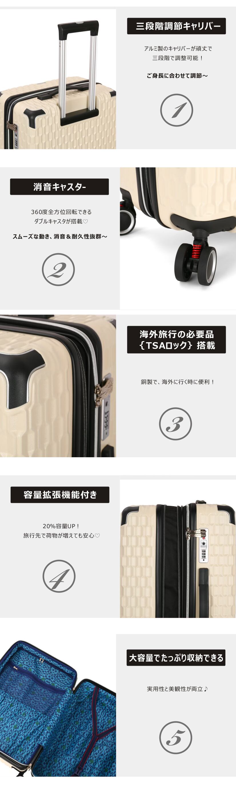 ※軽くて丈夫なPC+ABS素材を使用。旅のお供にピッタリなおしゃれで便利なキャリーケース