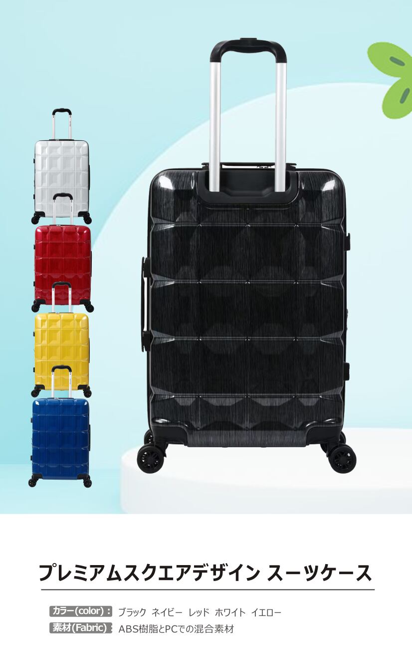 ※軽くて丈夫なPC+ABS素材を使用。旅のお供にピッタリなおしゃれで便利なキャリーケース