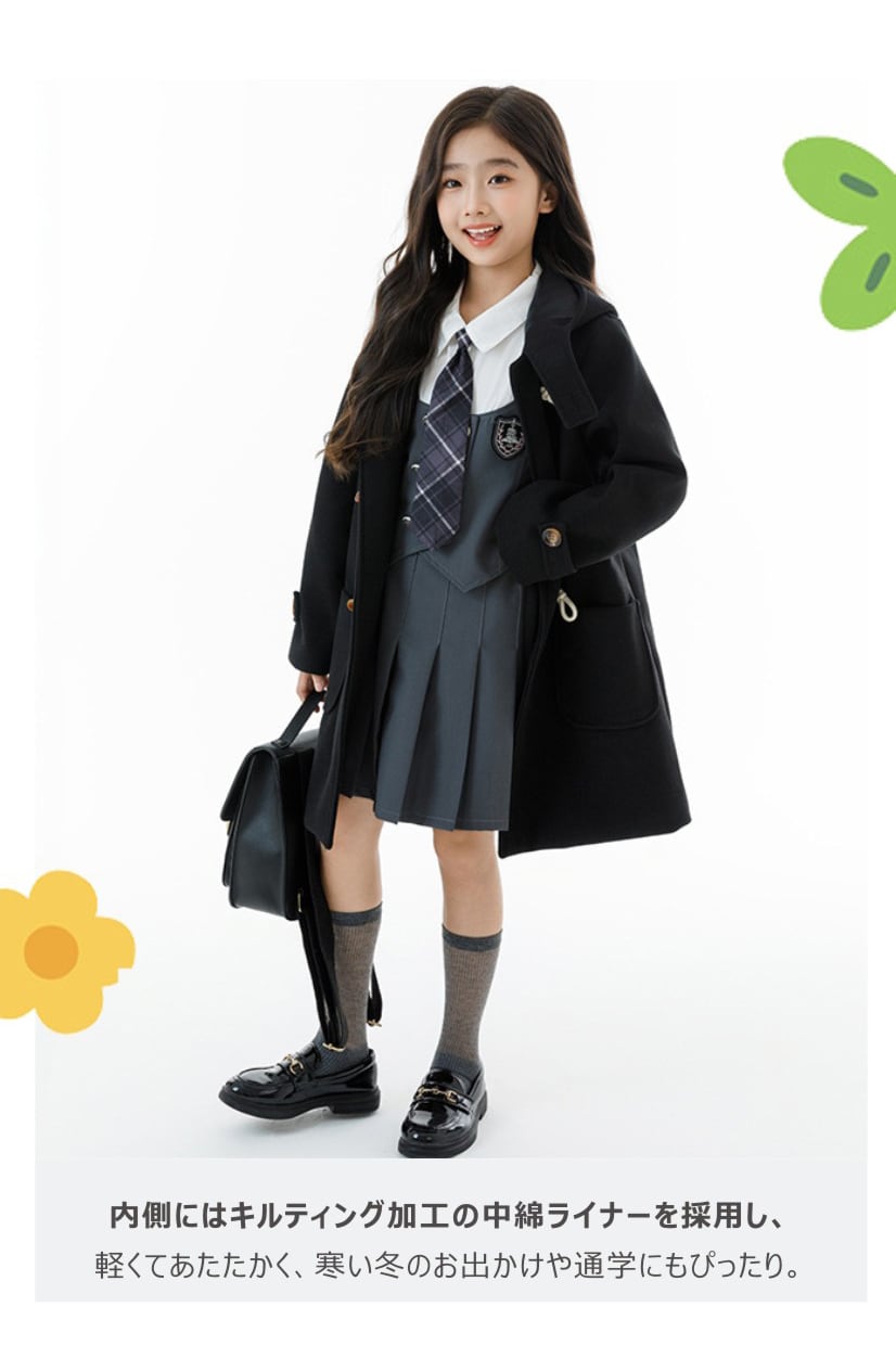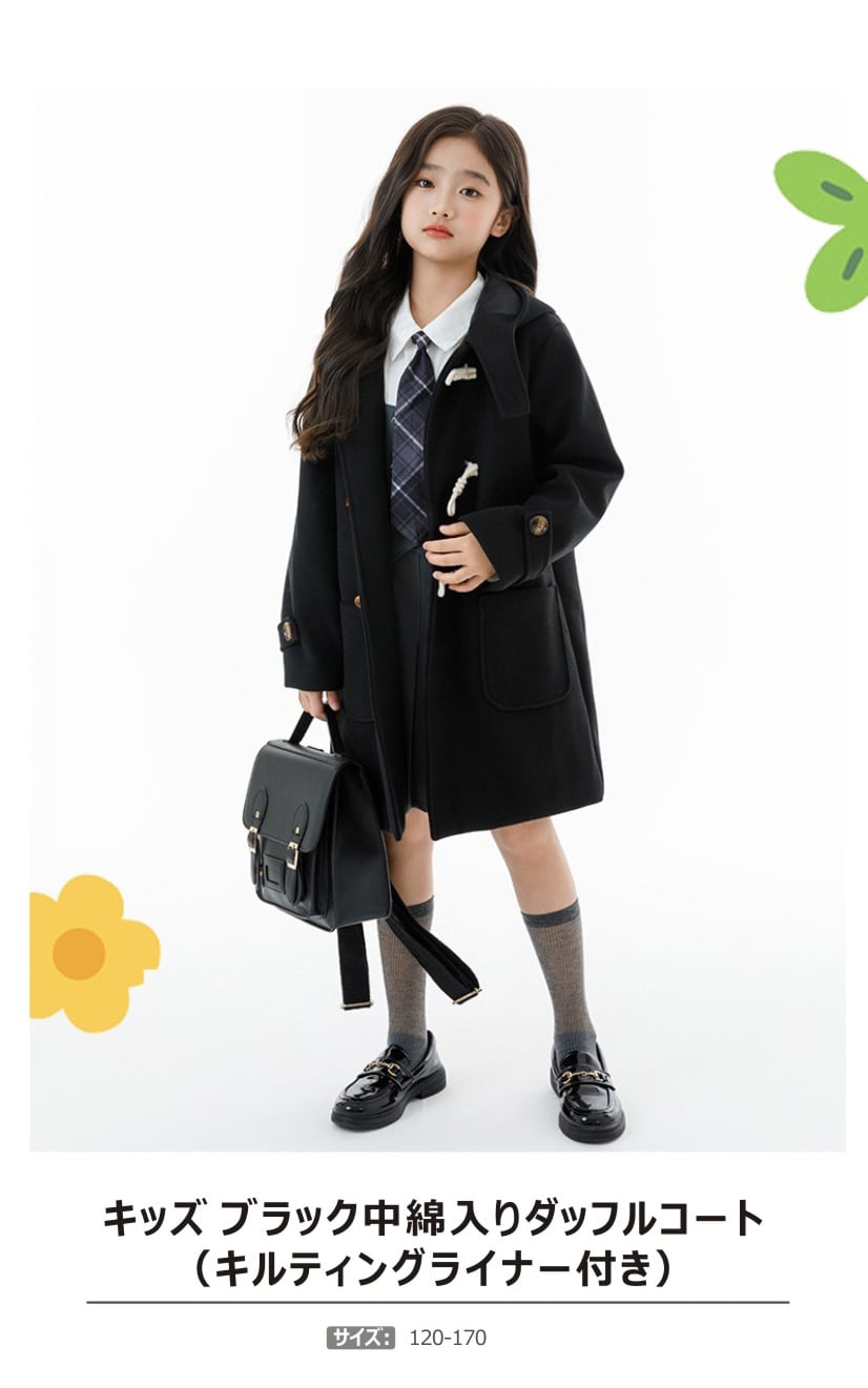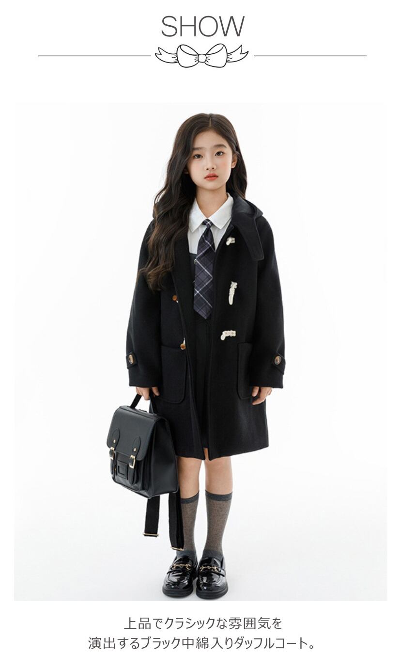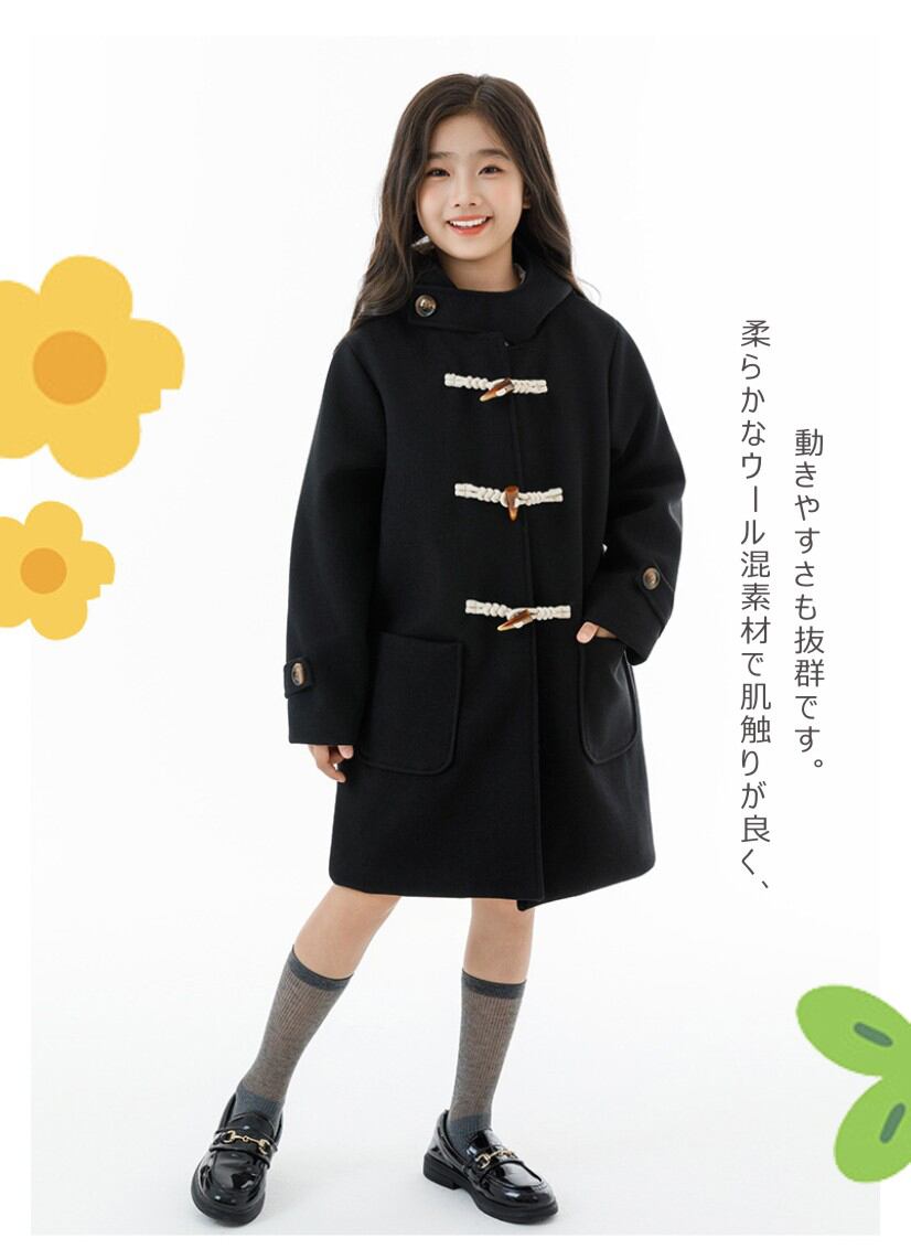送料無料 あったか ダッフルコート 冬コート 子供コート ブラックコート 子供 キッズコート 防寒 女の子コート 子ども 子供服 ジュニア アウター 小学生 中学生 大学生 大人 幼稚園 通学 通園 入学式 中綿あり