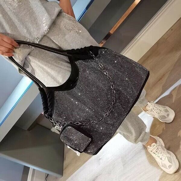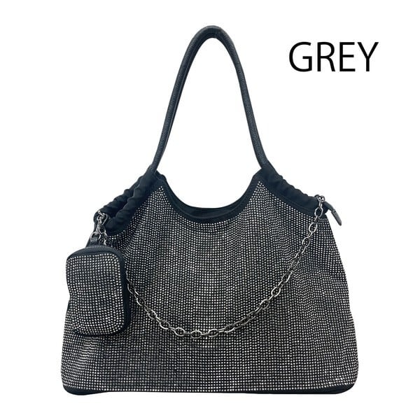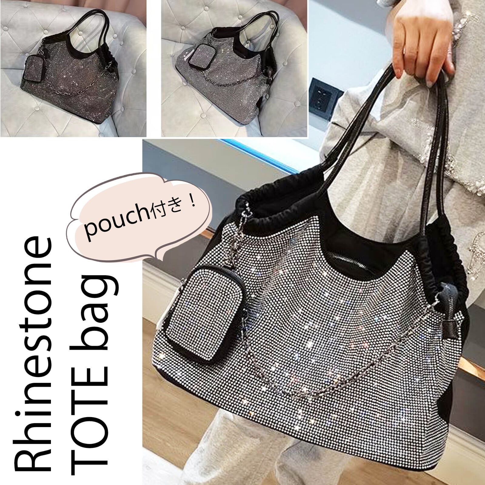 【60220】ポーチ付き ラインストーン スタッズ トートバッグ【idadi】バルーンバッグ トートバッグ レディース バッグ 大容量