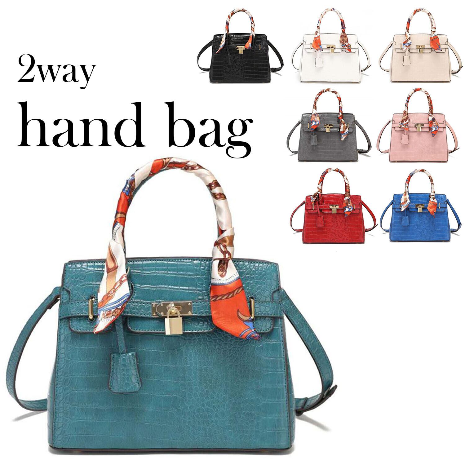 【80520】クロコ型押し鍵付き2wayハンドバッグ ショルダーバッグ 斜めがけ 肩掛け ママバッグ マザーズバッグ レディース 軽量 軽い