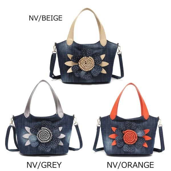 【AM505】バラコサージュデニムハンドバッグ【idadi】ハンドバッグ ショルダーバッグ 2way 斜めがけ 小さめ 大人 かわいい