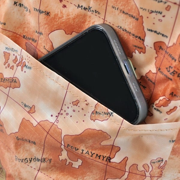 ○内装はアルミシートの保冷仕様になっているのでお買い物にぴったり。汚れた時もさっと拭けて清潔です。