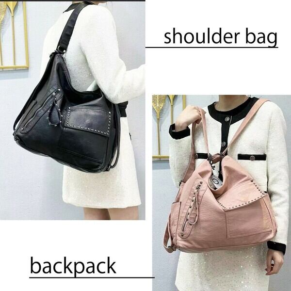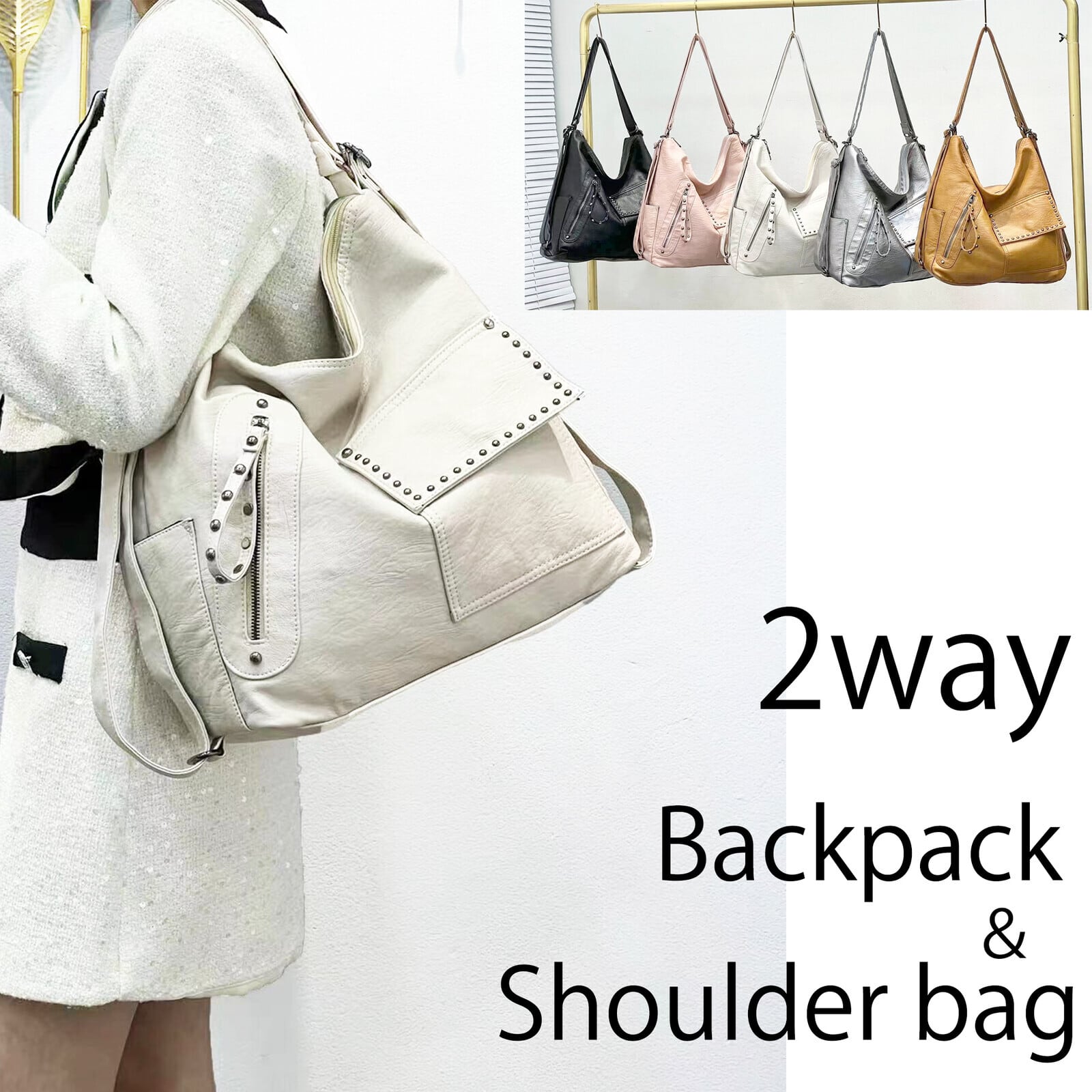 【R2401】洗い合皮2wayショルダーバッグ【idadi】ショルダーバッグ リュック バックパック 斜めがけ 肩掛け 通勤 通学 仕事 ビジネス 旅行 ママバッグ マザーズバッグ レディース 軽量 軽い 大容量