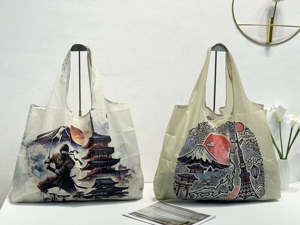 【J9 11】和柄のエコバッグ 大容量 折り畳み エコバッグ トートバッグ 買い物袋 レジ袋 折りたたみ バッグ