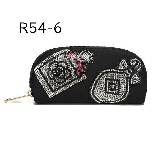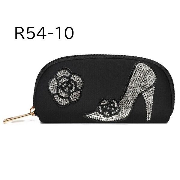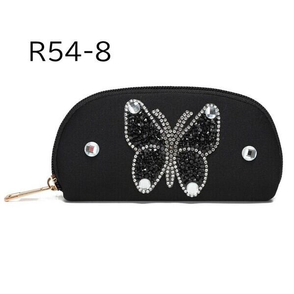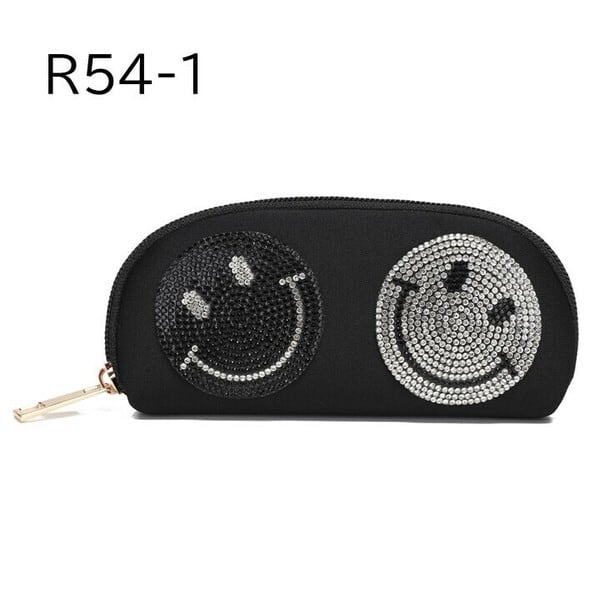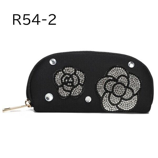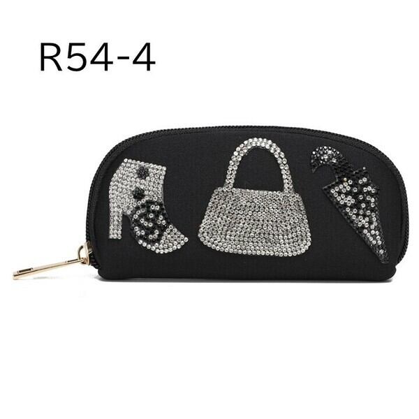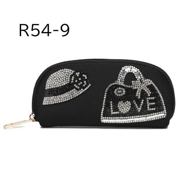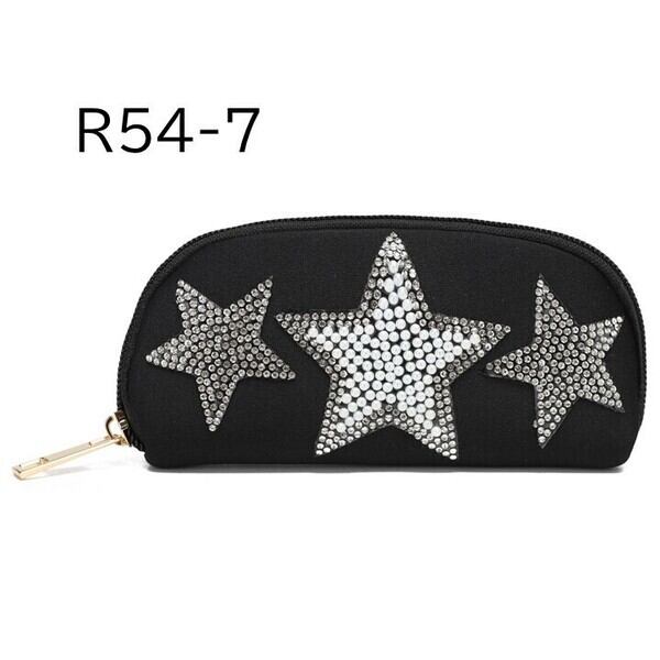【R54】キラキラストーンワッペン付き めがねケース【idadi】 眼鏡ケース ポーチ ペンケース 黒 ブラック かわいい
