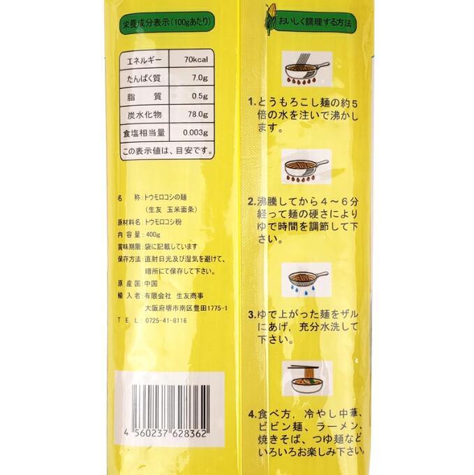 【10個セット】玉米麺条ー細400gトウモロコシの麺 玉米面條 無添加剤 中華面 とうもろこし とうもろこし麺 生友玉米面条