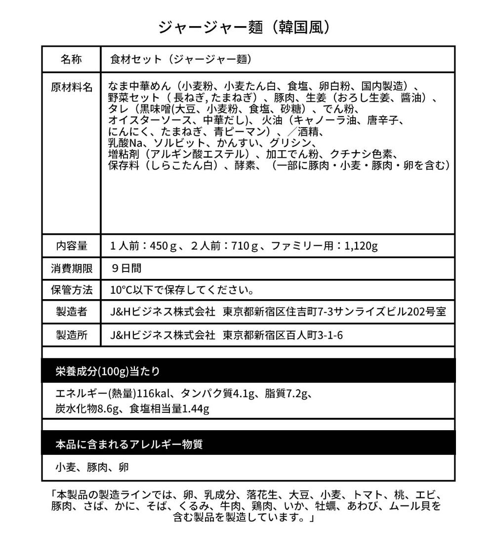 【ジャージャー麺 1人前】クール便 冷蔵ミールキット