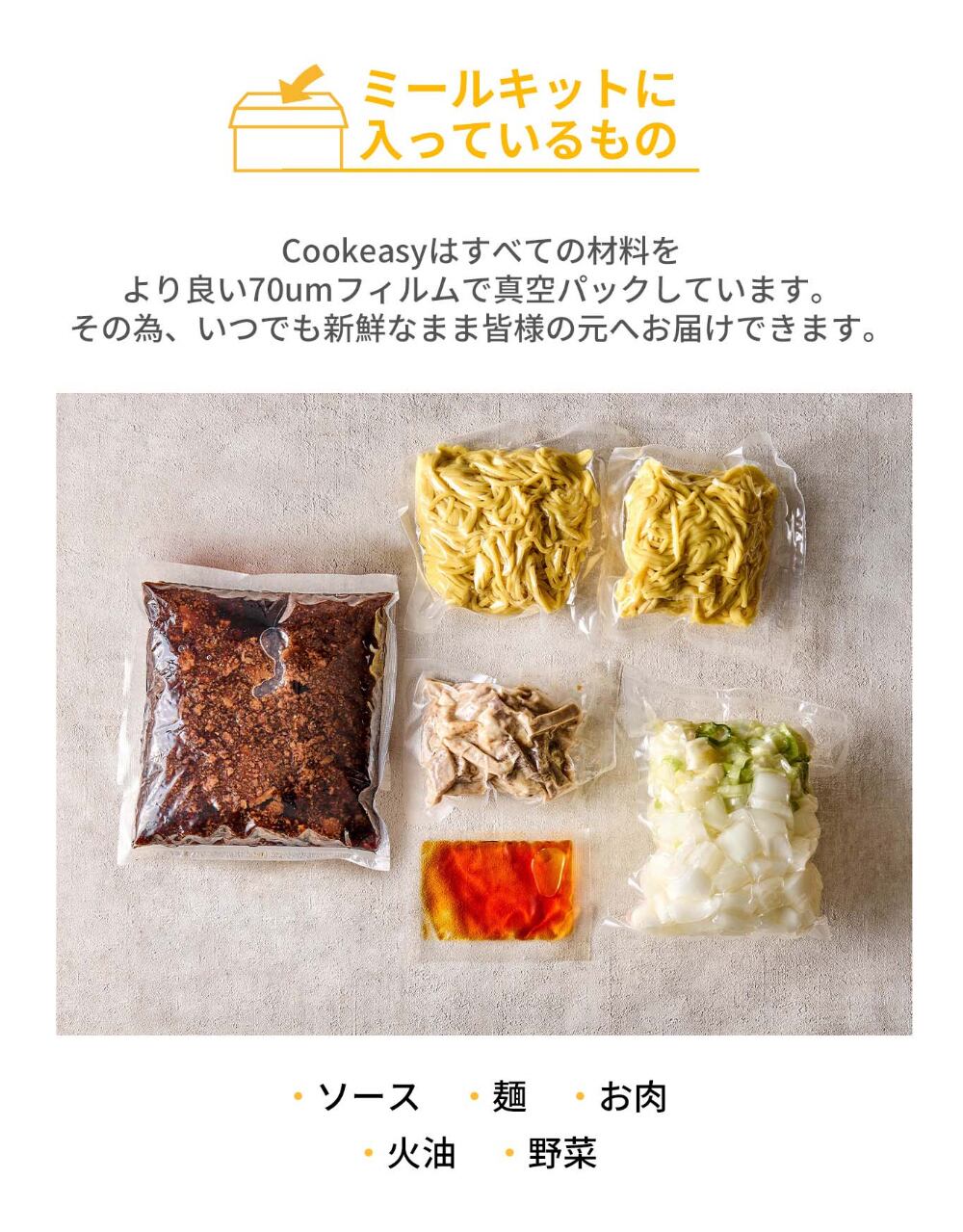 ジャージャー麺の調理を手軽に楽しめるミールキットが登場!辛さと旨味が絶妙なソースと、もちもち食感の麺がマッチした、絶品のジャージャー麺をご自宅でお楽しみいただけます。調理方法も簡単で、お手軽に本格的な味を楽しめるのが魅力です。さらに、冷蔵便での配送なので、新鮮な状態でお召し上がりいただけます。ご家族や友人とのランチにも最適ですよ。新鮮な具材と、特製のソースがあなたのテーブルを華やかに彩ります。