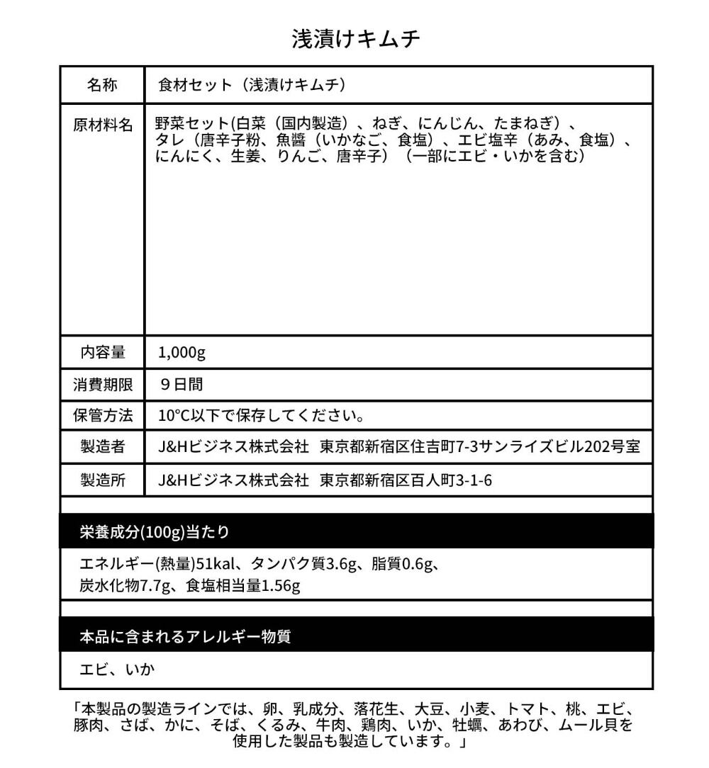 【浅漬けキムチ (1kg) 】 冷蔵発送 浅漬けキムチ クール便 冷蔵ミールキット 冷蔵食品 浅漬けキムチ (韓国風) ファミリーサイズ 1kg 韓国ミールキット