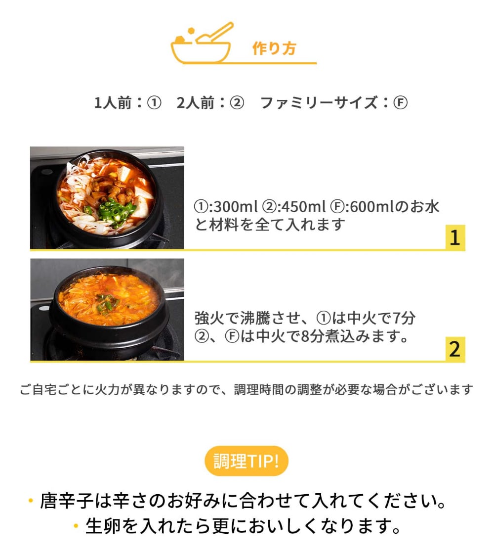 当店のスン豆腐チゲキットは、冷蔵発送でクール便でお届けいたします。すべての材料がセットになっており、簡単に作れるので忙しい日や料理が苦手な方でも手軽に楽しめます。ファミリーサイズで2人前なので、家族や友人とのお食事にも最適です。