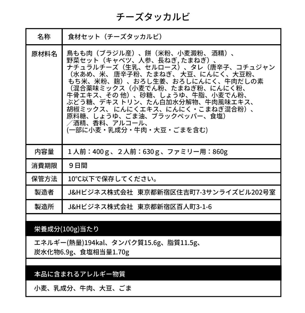 【チーズタッカルビ(ファミリー用)】冷蔵発送 チーズダッカルビ クール便 冷蔵ミールキット 冷蔵食品 チーズダッカルビ (韓国風) ファミリーサイズ
